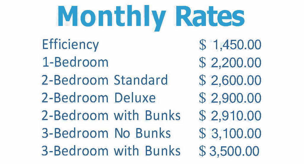 Deposit Policy: A non-refundable 30% deposit will be charged at the time of booking for every monthly reservation. The remaining balance will be charged 30 days before arrival and is non-refundable.